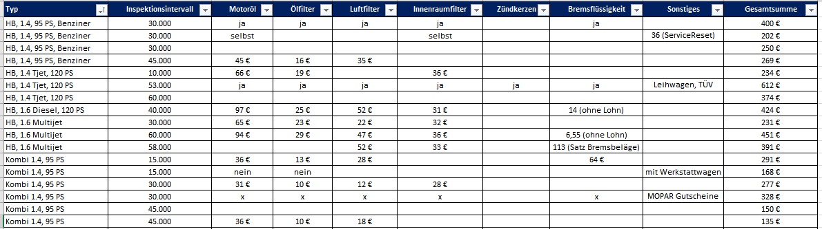 85€ für Parkschaden beseitigen und 24€ Reifenwechsel sind hier jedoch auch drauf .