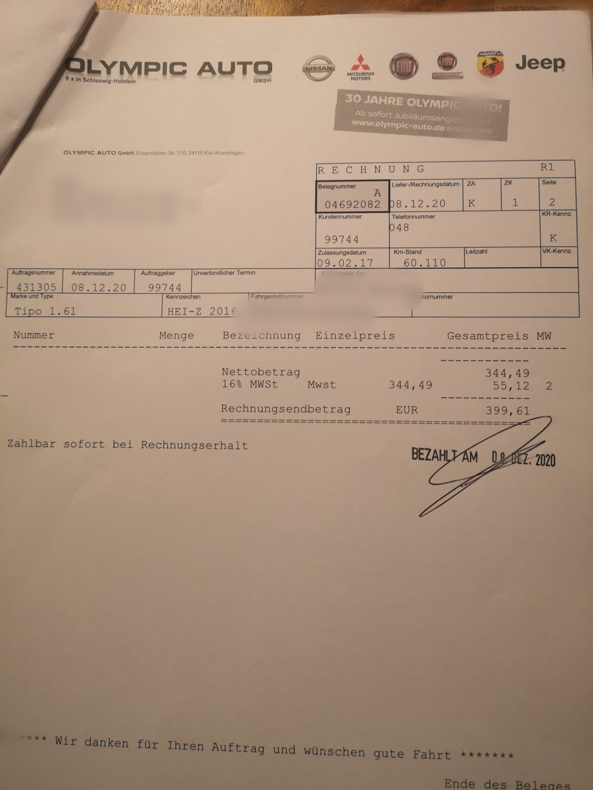 Bin euch noch die Rechnung von meiner 2 Jahres Inspektion schuldig.