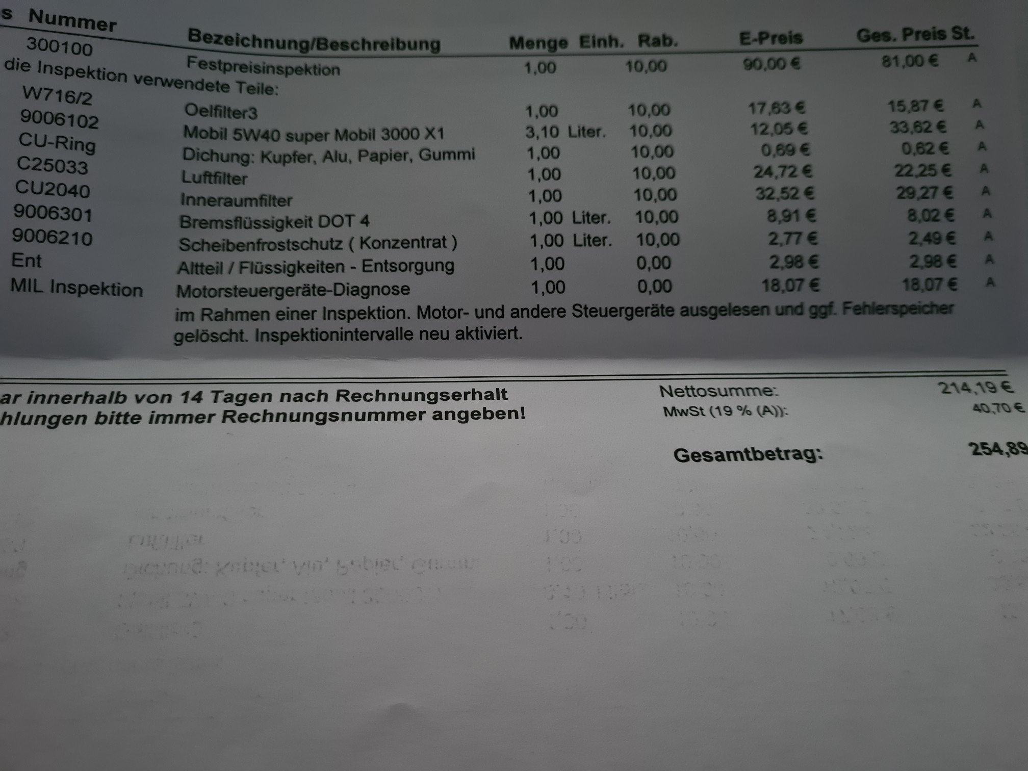 • 1. Inspektion inkl. 10% Neukundenrabatt (...trotz EU-Car !) 210€