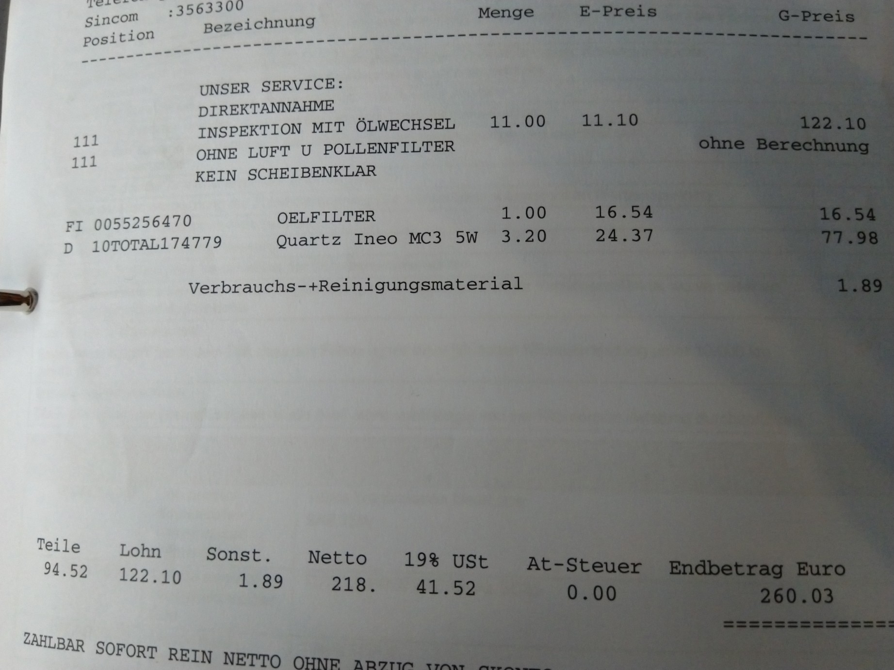 • So Inspektion Nr. 3 erledigt. Erste war vom Autohaus die zweite und jetzige hab ich gemacht.