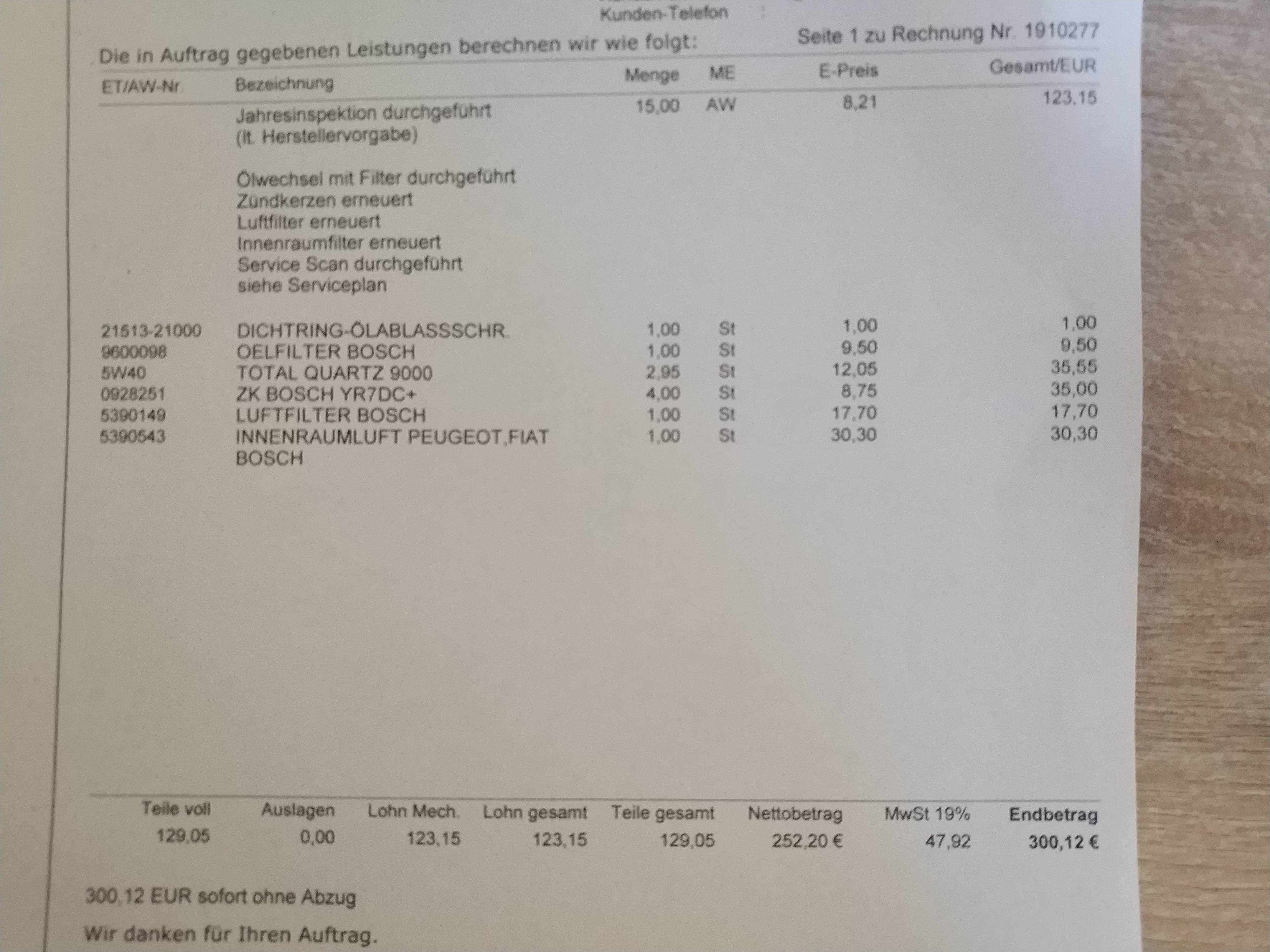 Ich finde es auch teuer, und Zünderkerzen nach nur 20.000 km versteh ich auch nicht. Aber was willst du machen?