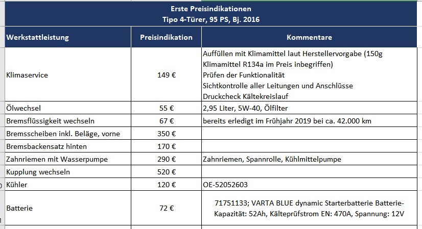 Heute war der Tipo bei der 45000 km Inspektion. Bezahlt habe ich €308,22