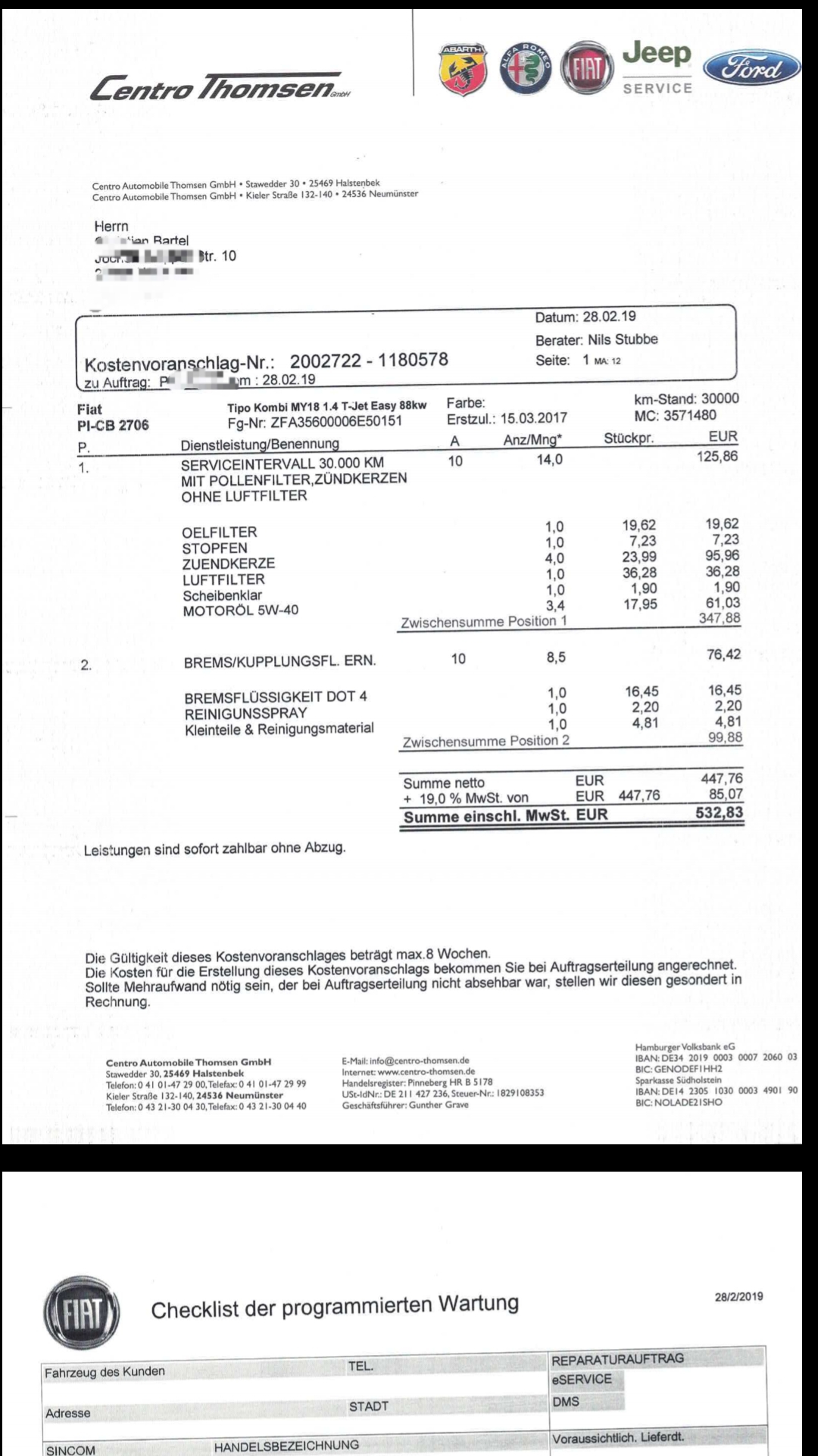 Naja 10km weiter ist noch ein Fiat Händler ,mal sehen was die sagen.