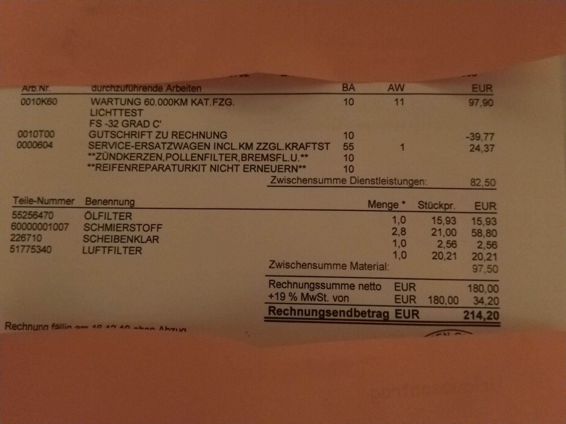 Hab mal was anderes als FCA probiert, nach zweiter Inspektion, 2 Jahre bei 11.000Km , mit z.B. unnötigem Kerzenwechsel! , für rund 460.-- € vor einem Jahr.