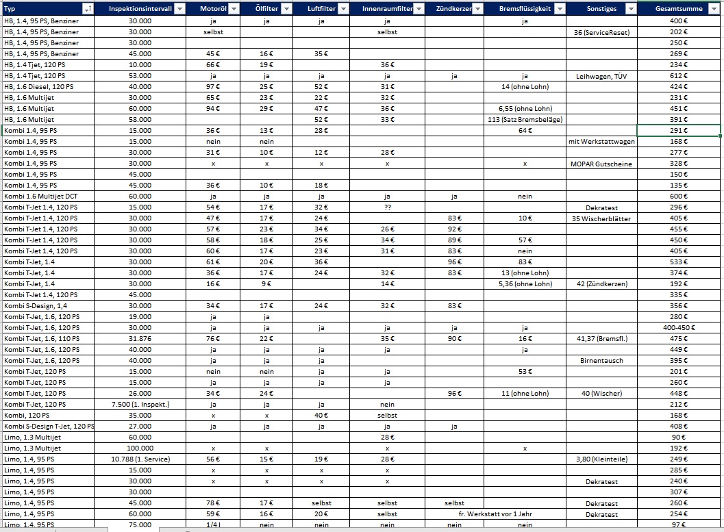 Mit Abgasuntersuchung/TÜV und Klima-Service (säubern, reinigen, desinfizieren und Filtertausch - wurde mir nach drei Jahren empfohlen, bevor es anfängt zu müffeln) alles zusammen für 523,31 EUR.