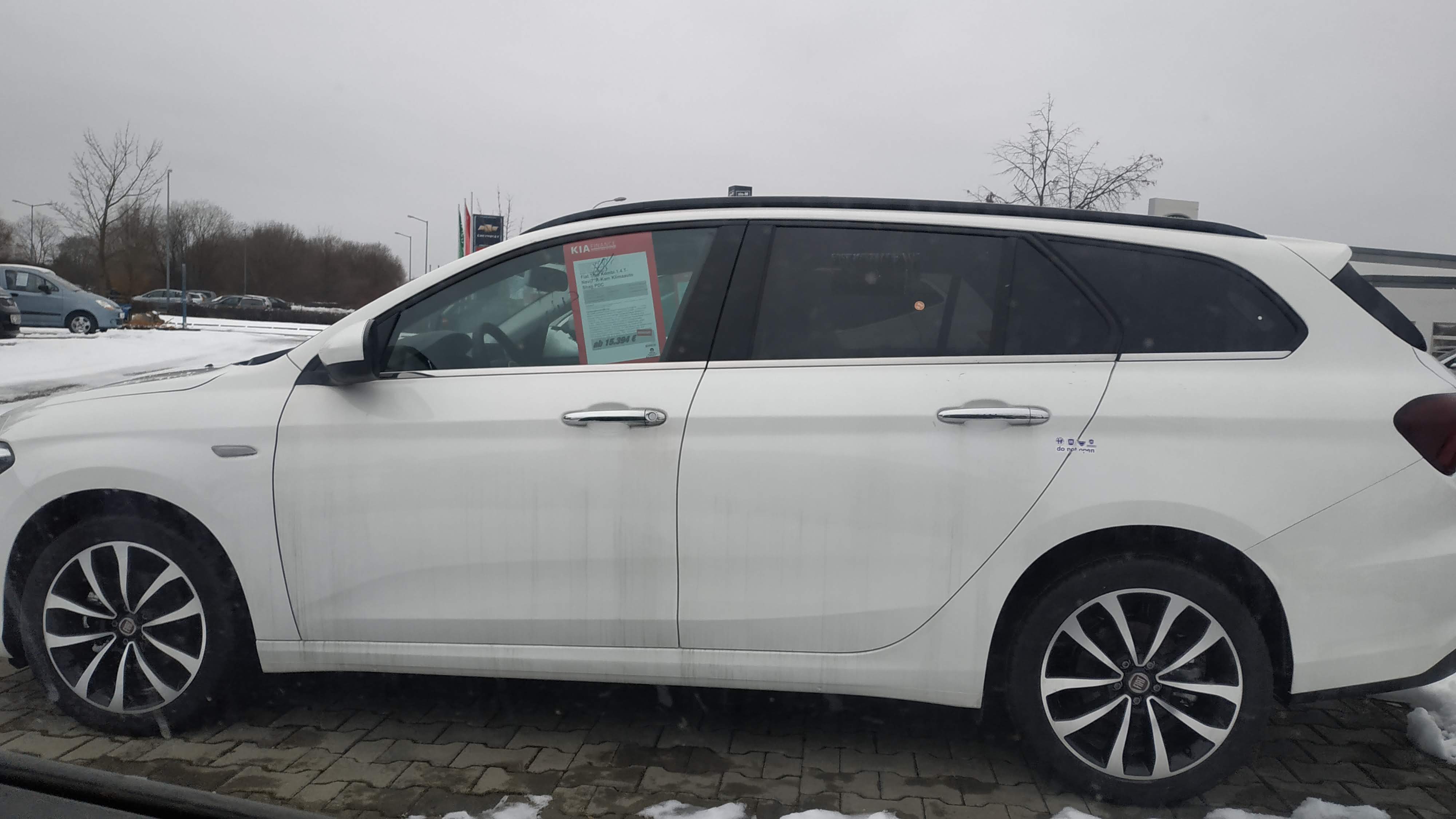 Mein Fiat: 1,4l-120PS-Benziner als Kombi Lounge in GelatoWeiß mit diversen Paketen u.a. Popowärmer und 17" Alu´s, genannt "TurBienchen"