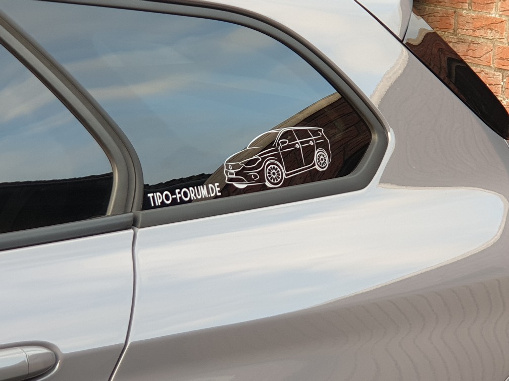 oben auf der Heckscheibe..."I Love My Tipo" mit Karosserieform...