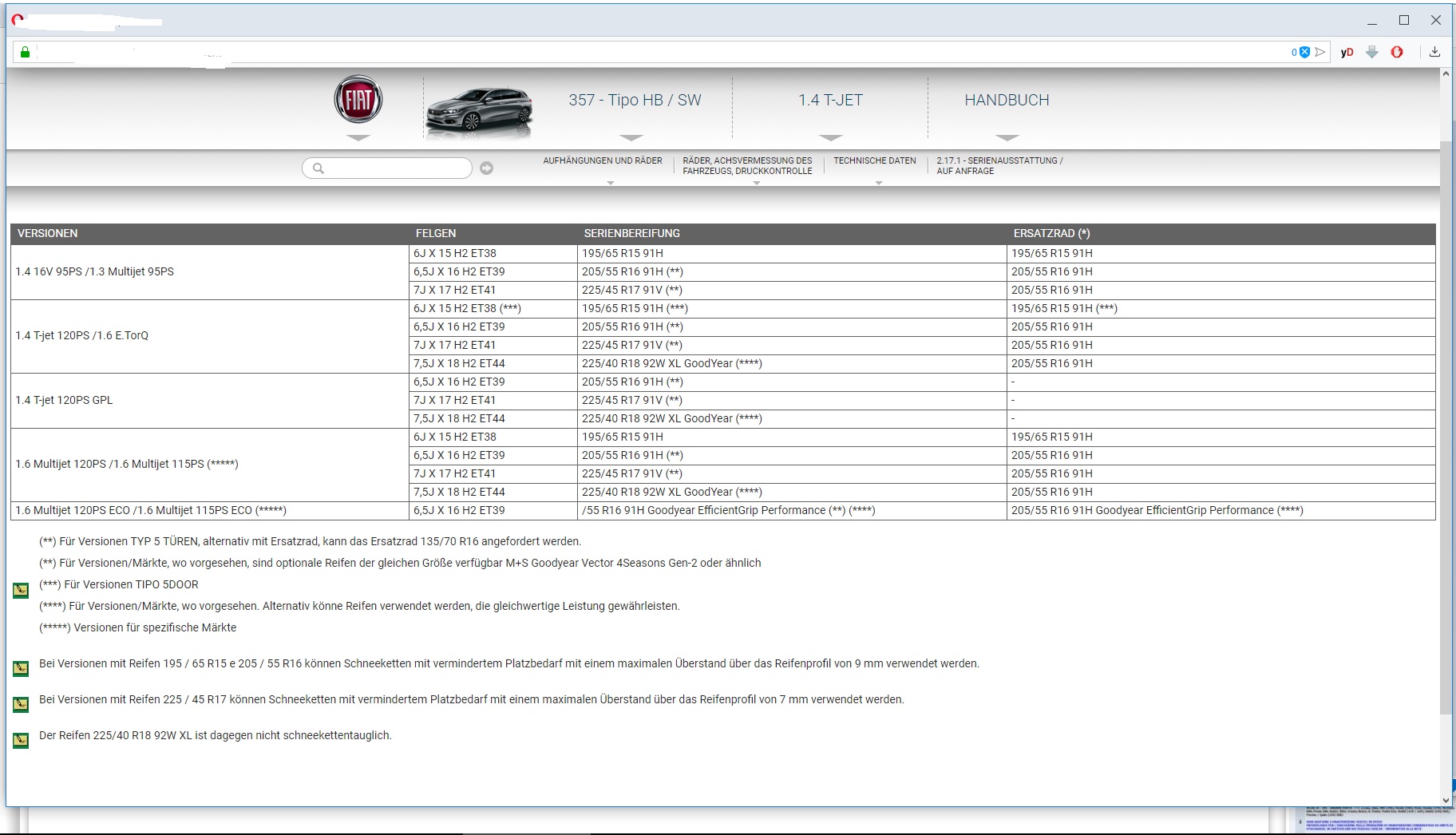 Fertig.dazu mal ein Auszug aus der offiziellen Serienbereifung des Tipos.