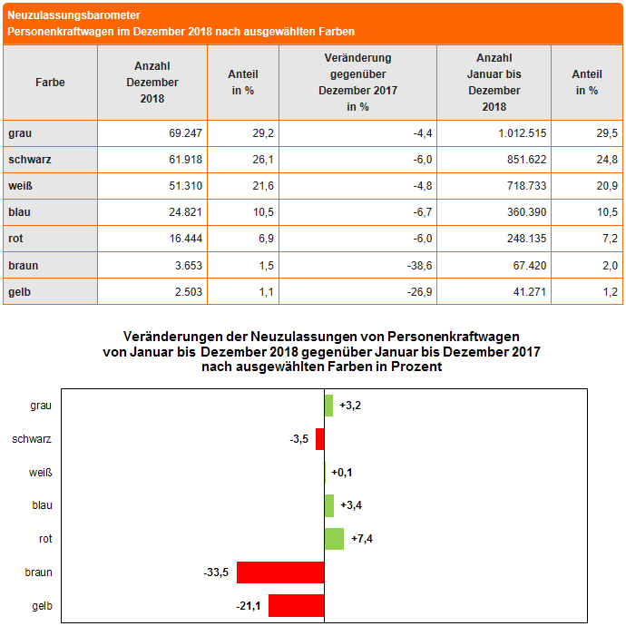Schwarz war in 2018 etwas rückgängig, dies liegt an dem schlechteren Abverkauf der