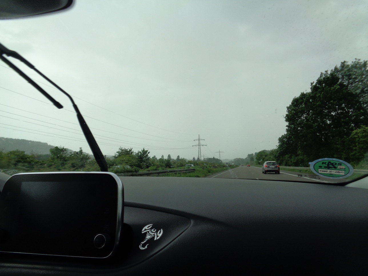 Die Scheibenwischer auf höchster Stufe schafften es nicht, die Wassermassen zu verdrängen...
