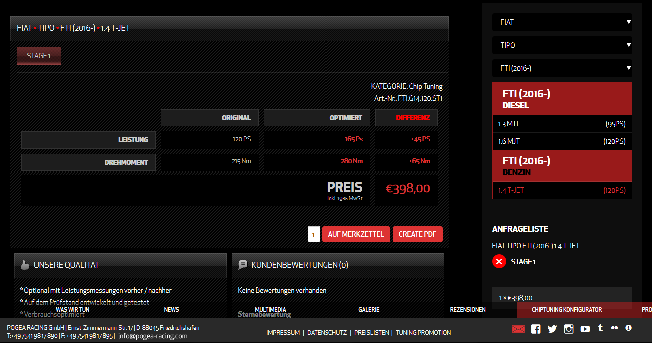 Hab ich bei meinem 1.3er auch schon angefragt, hab da ne Firma gefunden wo den auf max 140ps bringen kann aber Garantie ist dann von Fiat weg, deswegen warte ich damit noch.