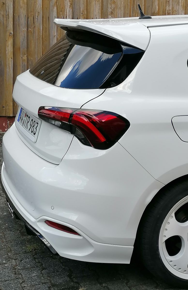 Mein Fiat: Fiat Tipo Sport 1,4T-Jet, Vollausstattung, Leistungssteigerrung von Pogea Racing 147PS 300Nm, Sommer und Winterradsatz Dotz Spa Dark 8x18" ET35 225/40 18", Bilstein B8 Sportstoßdämpfer, H&R 40/35 Federn, Smoke Nebelscheinwerfer, K&N Sportluftfilter, Evolity Stahlflexbremsleitungen, Bremssättel schwarz lackiert, schwarze LED Seitenblinker, Schaltwegverkürzung Novitec, cleaner Kühlergrill (Eigenbau), Heckklappe clean (Schriftzug,Logo,Scheibenwischer entfernt), LED Facelift Heckleuchten, handgefertigte Edelstahl Abgasanlage ab Kat von Wimmer Rennsporttechnik 80er Doppelendrohr fahrzeugmittig, 200 Zellen Sportkat von Wimmer Rennsporttechnik, Sportlenkrad, MOMO Schaltknauf, überarbeitete Schaltmanschette, individuelle Fußmatten, Kurzstabantenne Simoni Racing, Motoranbauteile lackiert, diverse Silikonschläuche, Dämmmatte Motorraum zu Showzwecken überarbeitet, Haubenlift, LED Fernlicht, Zusatzinstrument in A-Säule (Ladedruck,Öldruck,Öltemperatur,Boardspannung), DTE Pedalbox, Hifiausbau Audison SR 5.600 Verstärker, Frontsystem Audison AV K6, Hecksystem Audison AV 6.5, Subwoofer Hertz MP 300 D4.3 Pro, Hochtöner in Spiegeldreiecke verbaut, Subwoofer in Reserveradmulde verbaut,
