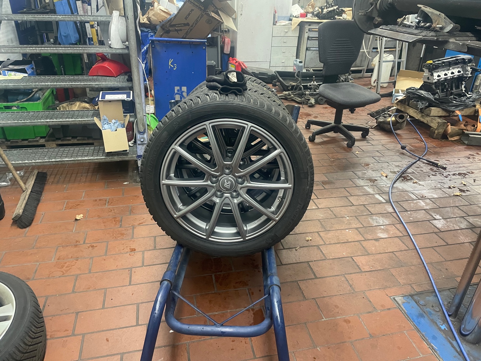Mal die Winterfelgen montiert. Wurde ja nun gestern auch Zeit. Kamen direkt an und dann Abends ab ans Auto.