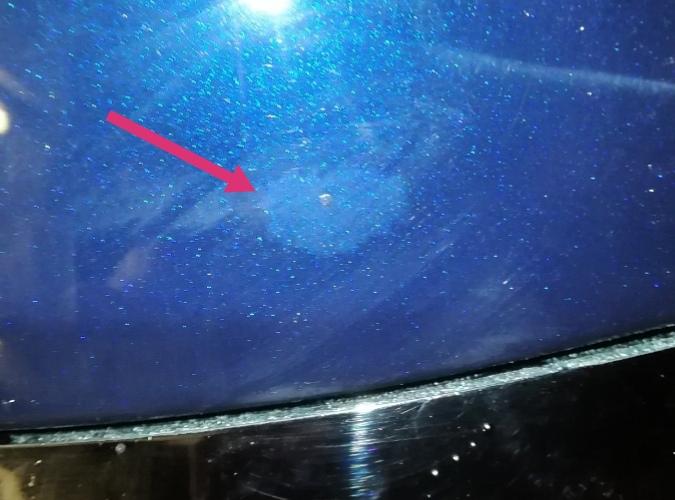 • Das Problem ist, dass die Stelle schon vorher mal poliert wurde und laut deren Aussage ist es unmöglich neue Lack aufzubauen. Den würde man beim Polieren komplett abtragen und weiteren bestehenden Klarlack ebenfalls abreiben.