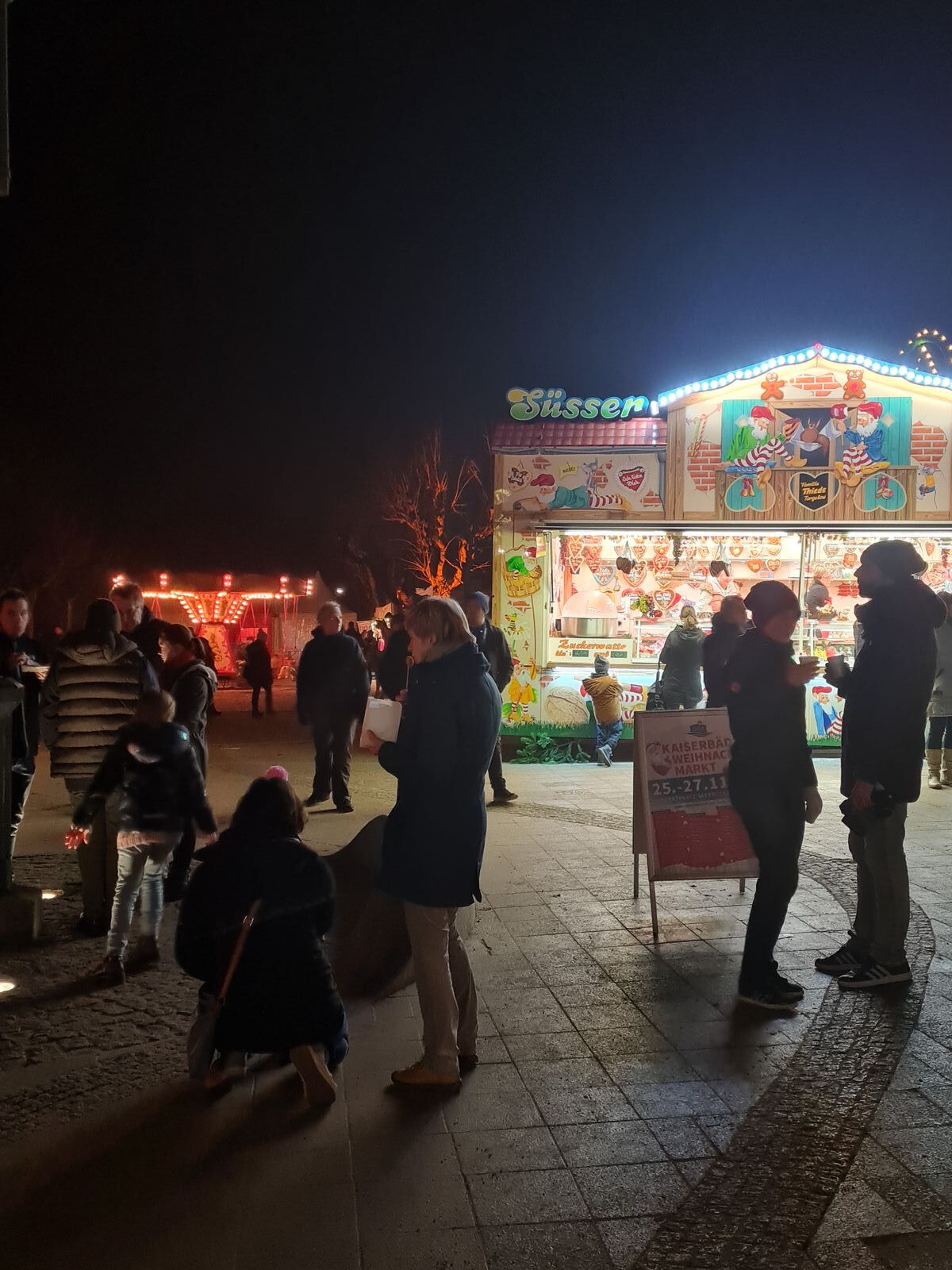 Wir fahren gleich durch bis Ahlbeck da is Weihnachtsmarkt mit Bratwurst oder so. Ich hab Hunger!
