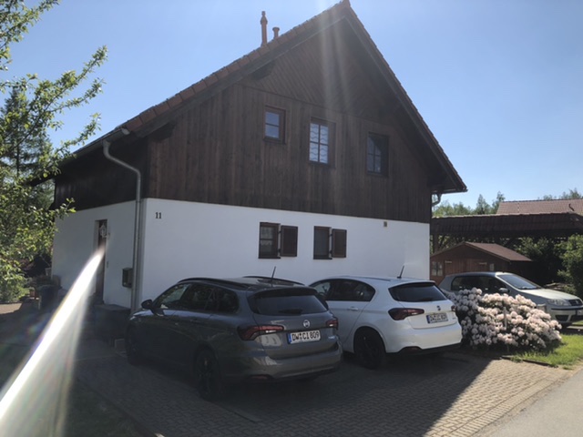 Unser Doppelcarport hat rund 40 Quadratmeter Fläche: Alles selbst gebaut, selbst berechnetes Konstruktionsholz (Fichte, Kanten gehobelt), alles grundiert und mehrfach gestrichen, Fundamente ausgehoben und Pfostenanker eingegossen, usw, usw. und dann alles selbst aufgebaut. Als Dach habe ich gewelltes Plexiglas von Evonik gewählt, ist zwar schweineteuer, aber dafür hagelfest und hat 30 Jahre Garantie gegen Vergilben. Das gleiche Material hatte ich ein paar Jahre zuvor für unsere Pergola verwendet und war daher überzeugt. So sieht der Carport aus: