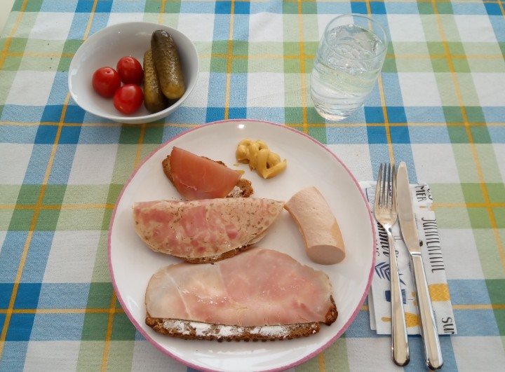 In Bayern würde bestimmt das obligatorische Bier neben dem Teller stehen.bei mir roter-Most natürlich mit Wasser verdünnt