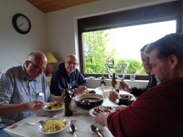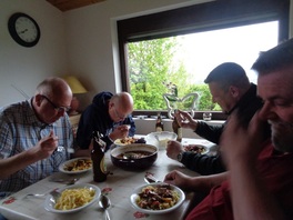 Gestern abend hat Elke zu Hausmannskost geladen, bei der alle drei begeistert mitgegessen haben: Spätzle mit Misch-Gulasch (Rind und Schwein) incl. Paprika und Tomaten in der Sosse...
