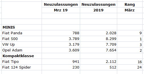 Ganz stark gegenüber den Vormonaten der Tipo mit einem Zuwachs von ca. 50%.