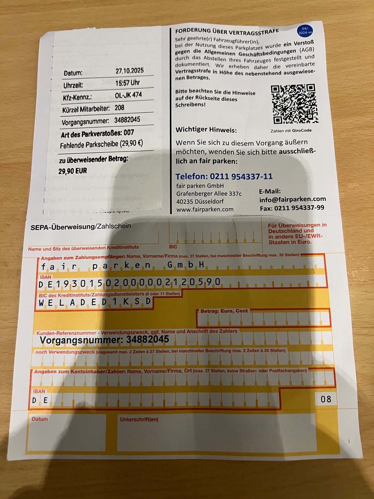 Du steigst nichtsahnend ins Auto ein, fährst los und liest 2 - 3 Wochen später diesen Brief.
