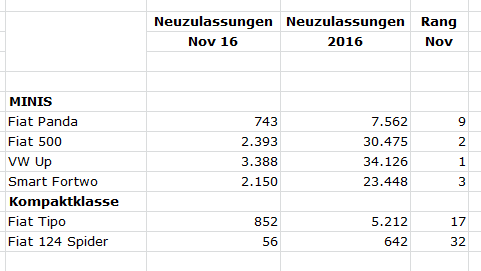 Bei den MINIS haben der Panda und der 500er im Vergleich zum Vormonat einen Platz im Ranking gut gemacht.