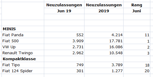 Der Tipo legt 30% gegenüber dem Vormonat zu, der 124 Spider verzeichnet