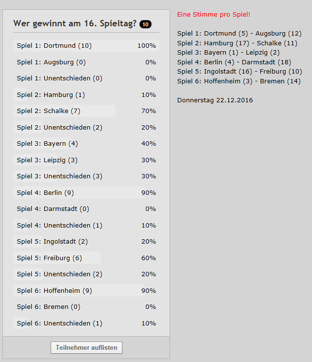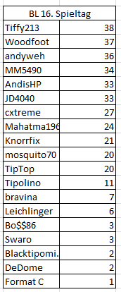 Wer gewinnt am 16. Spieltag? 12