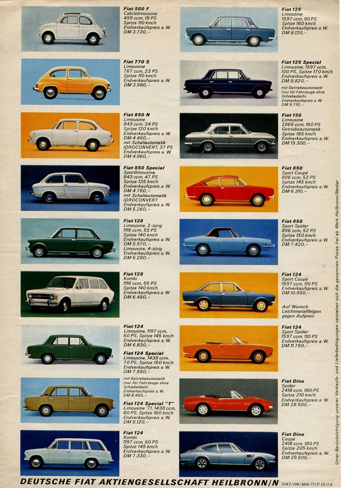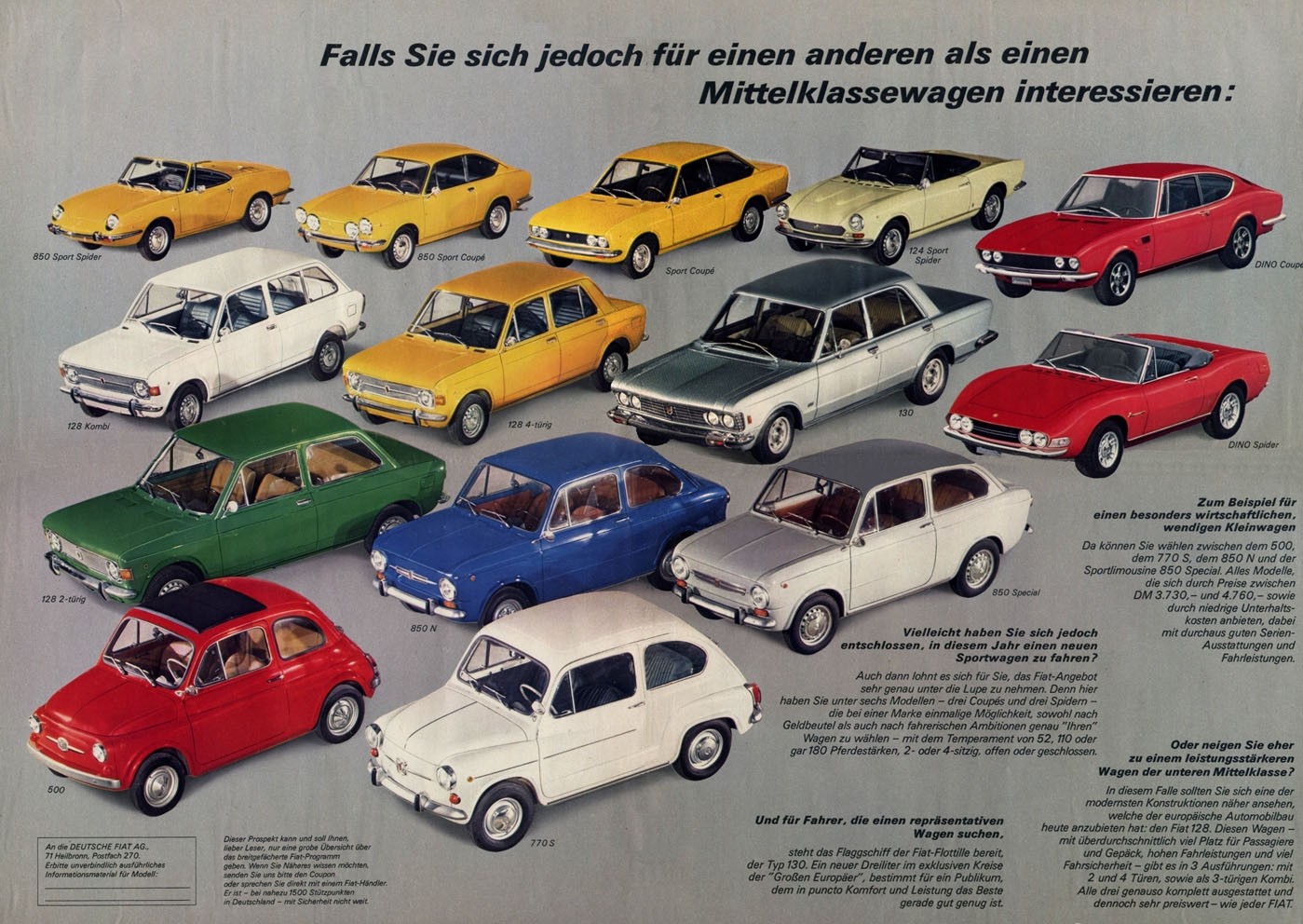 Wenn man alleine die Modellpaletten von früher mit heute vergleicht, da konnte Fiat noch anders. Heutzutage werden pro Jahr etwa 1,3 Millionen Autos im Jahr gebaut, damals wurden pro Tag 6000 Autos gebaut.