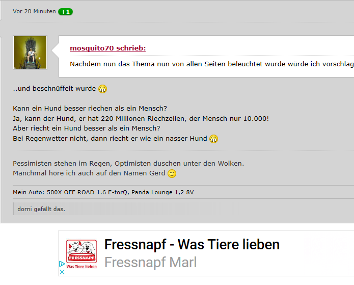 • Ich mach auch nicht das Forum für die Werbung verantwortlich. Um Gottes Willen. Außerdem irgendwie muss ja auch was verdient werden, damit wir hier uns Verbal auslassen können. :D