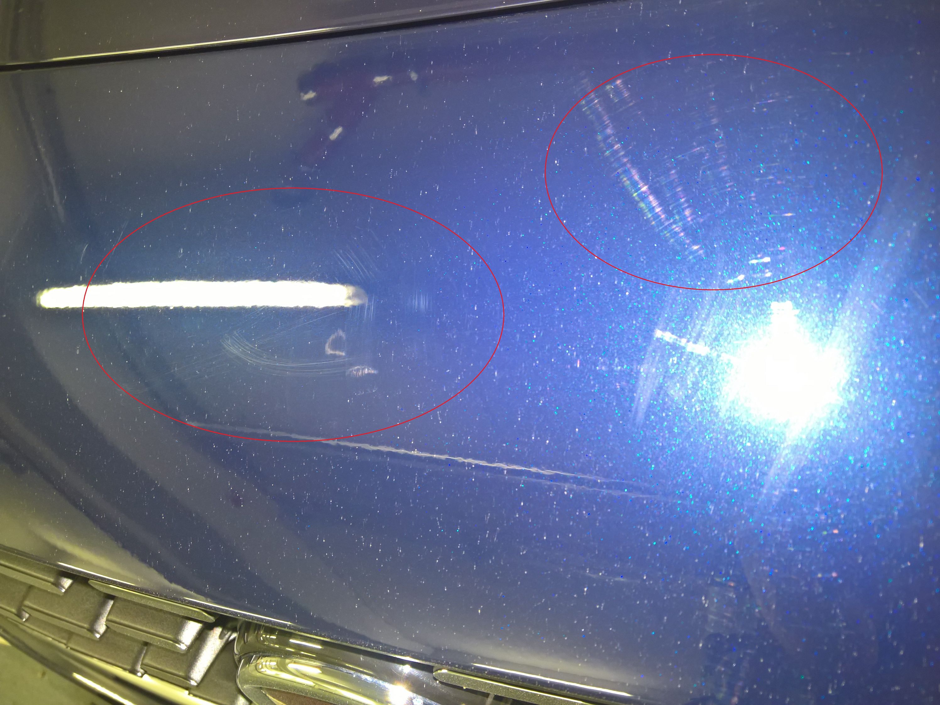 Ich muss zugeben ich weiß natürlich nicht ob diese durch die Aufbereitung entstanden sind, aber ich vermute das hier "trocken" bzw. mit dem falschen Material poliert wurde - interessant ist allerdings das am restlichen Auto nichts zu finden ist...