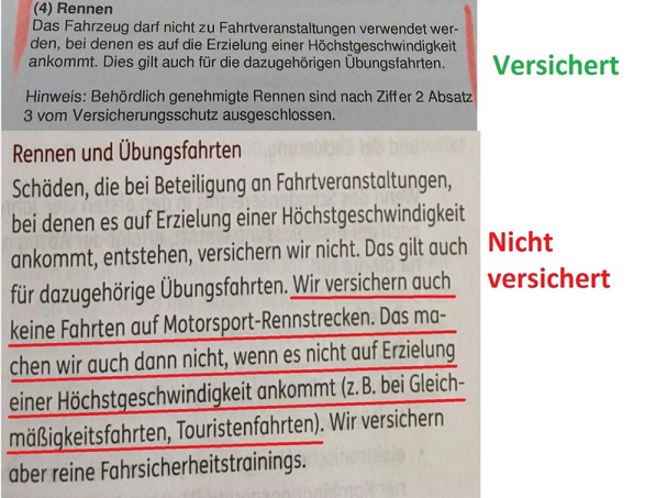 Dazu muss man die AGB der Versicherungspolice lesen. Achtung, diese kann sich unterscheiden zwischen Haftpflicht und Vollkasko! Die HUK hat eine Schadensregulierung während Touristenfahrten auf dem Nürburgring in (Alt)verträgen niemals ausgeschlossen. Viele Versicherer schließen mittlerweile in ihren Policen "Touristenfahrten auf den Nürburgring, Hockenheimring etc." explizit aus. Die Nordschleife des Nürburgring ist während der Touristenfahrten eine mautpflichtige Landstraße. Daher zieht der oftmals gebrauchte Passus in den Verträgen "Veranstaltungen zur Erreichung der Höchstgeschwindigkeit, Training und Teilnahme an Rennveranstaltungen, befahren Rennstrecke etc." nicht... -