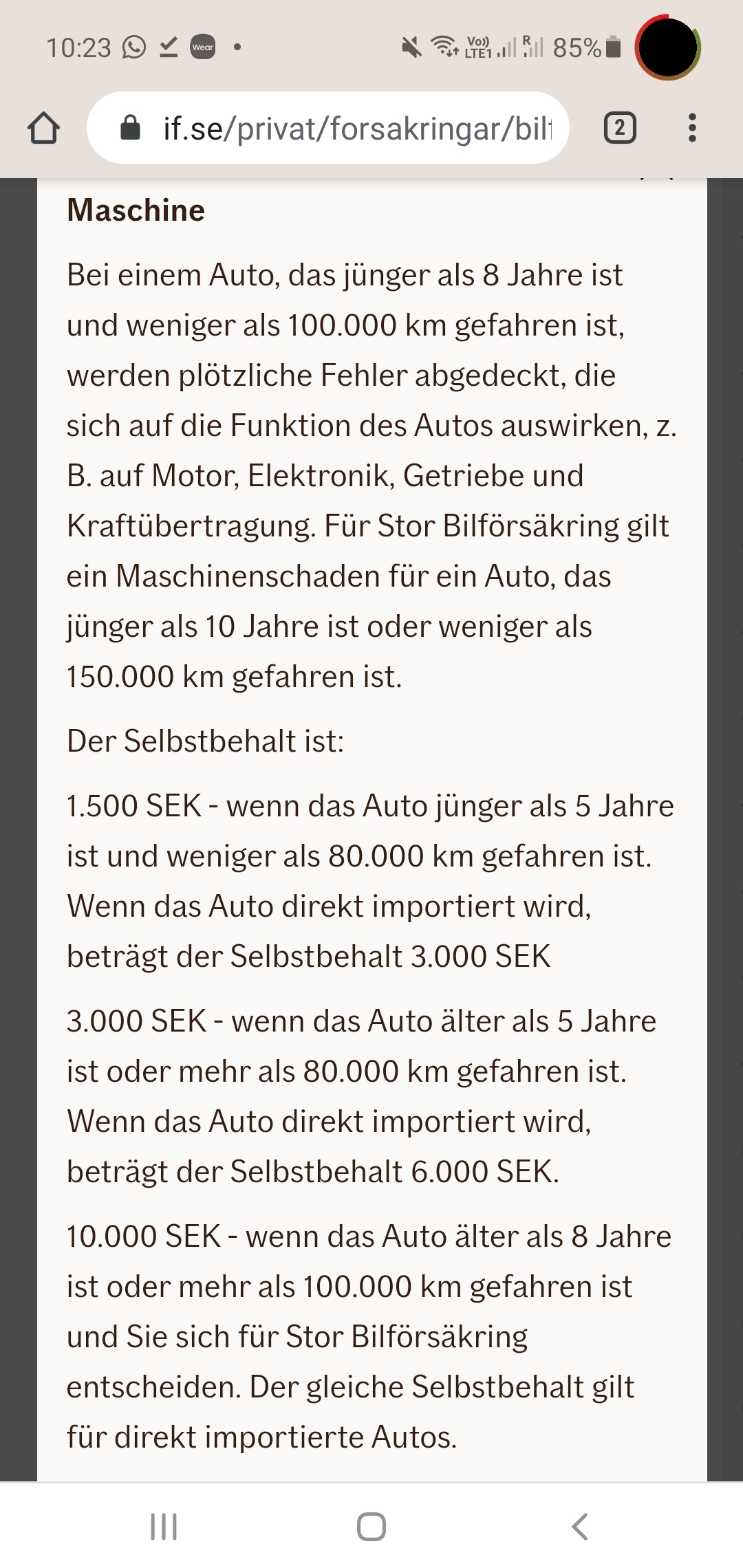 Meine Garantie ist schon abgelaufen. Meine Versicherung deckt also wie folgt (siehe Foto). Bei SEK könnt ihr das Komma einfach um eine Stelle nach links schieben um € zu erhalten also 1000SEK=100,00€