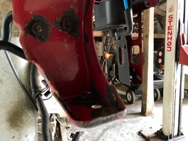 Als die alte Aufhängung demontiert war fielen zwei oder drei kleine Roststellen an der Spritzschutzwand zwischen Motorraum und Radlauf ins Auge. Was also tun? Da die Kupplung eh durch war fiel die Entscheidung dahingehend dass das gesamte Triebwerk samt Getriebe ausgebaut und überholt werdel sollte...
