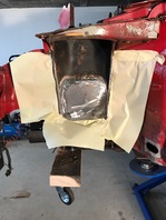 Leider sind die Innenkotflügel von der Substanz her schlechter als gedacht. Es müssen also neue bestellt werden. Gott sei Dank sind die Teile lieferbar, und das sogar recht günstig... Trotzdem wollte ich die vorhandenen Teile sandstrahlen und neu grundieren / lackieren. Aber wenn ich hier sandstrahle bin ich durch!