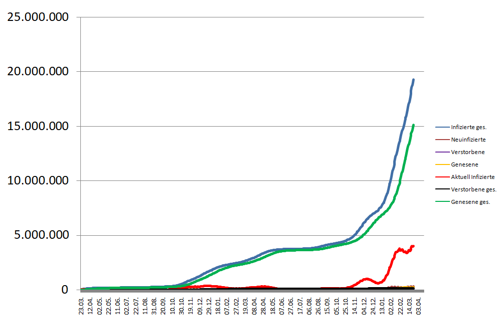 PS: sehr interessant für mich ist auch : Meine Frau ,mit der ich Tag und Nacht zusammen bin ,habe ich nicht angesteckt.Und auch meine beiden erwachsenen ungeimpften Kinder haben mit dem Virus noch kein Problem gehabt( die beiden haben Angst vor der Impfung,da ihre Mama zu DDR Zeiten an einer Hepatitis verseuchten Spritze 10 Jahre lang gestorben ist).. Tja ,nichts genaues weiß man nicht.....Ach ja eins noch : ich hatte ja keine Krankheitssynptome.Das einzige warum wir stutzig wurden:meine Frau hat mir ihr neues Parfüm vorführen wollen.Ich fragte sie ,was für ein Parfüm?Hamse dir Wasser verkauft? Absolut keinen Geruchssinn.War nach einer Woche wieder gut.Sonst nichts.... -