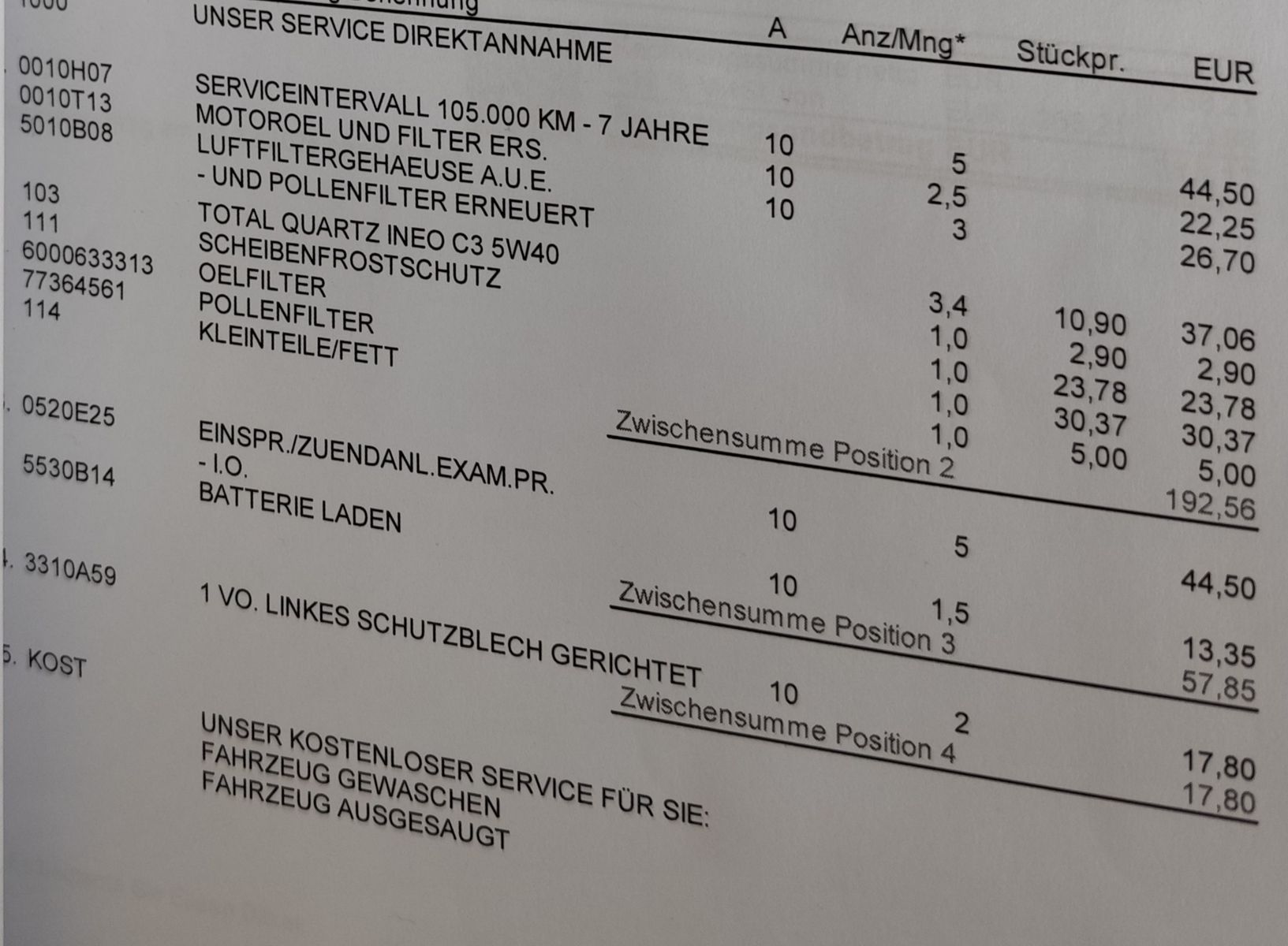 Hallo Enzo ich habe nicht den Preis mit dem Daumen Hochgejubelt ich wollte da mit nur zum Ausdruck bringen das wenn das nur alle 5 Jahre mal so Teuer wird bin ich zufrieden. Klar tut das weh wenn das alles aufeinmal kommt aber ich wusste ja ungefähr auf was mich zu kommt.