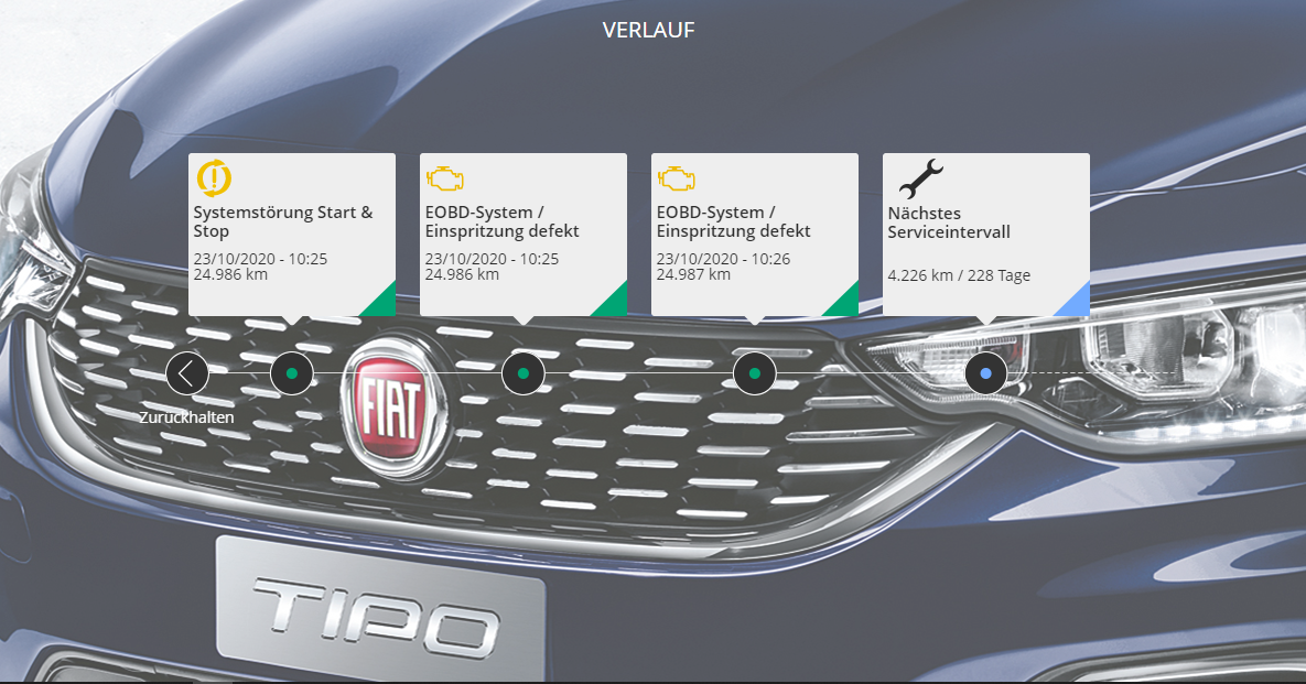 Am vorletzten Tag wollten wir noch paar Sachen besorgen, also ab ins Auto, Schlüssel rum, Motor an und los gefahren. Nach 10 Metern Fahrt, Alarmton und Lampenladen im Armaturenbrett, Motorkontrollleuchte und Start-Stop auf dauergelb. Die nette Dame des Uconnect hielt mir dann einen 3-minütigen Vortrag über die möglichen Ursachen...Batterie, Kat, Einspritzanlage...