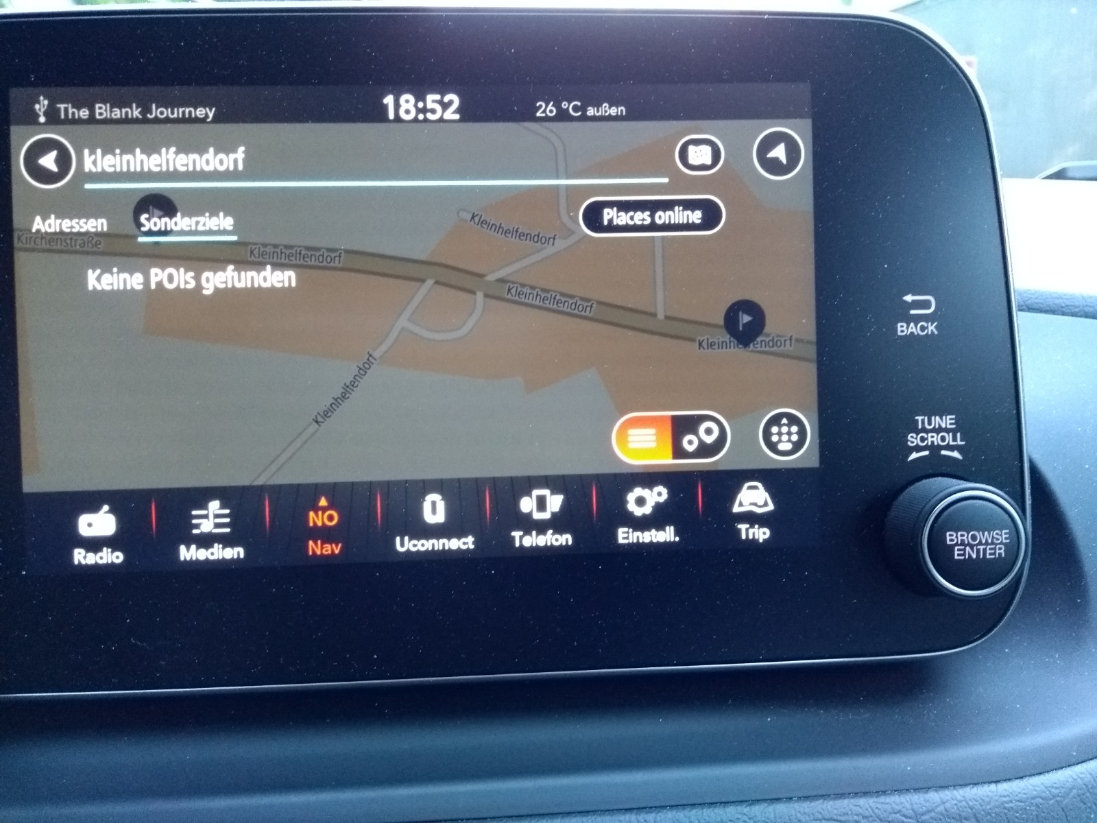 (Dieses Places Online kommt glaube ich nur, wenn man per uconnect und Hendl tatsächlich online ist, da könnte man dann auch z.B. "Restaurant" eingeben)