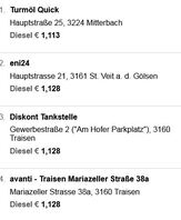 hier die tagesaktuellen Preise aus Wien. Dort natürlich billiger als bei mir am Land.