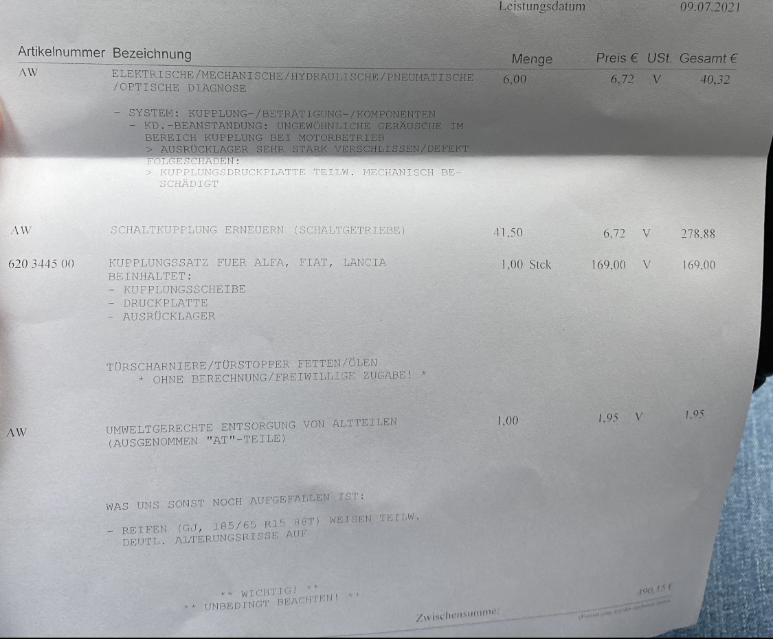 Immerhin hatte ich ein bisschen Glück, dass in der Werkstatt gestern noch ein größeres Vorhaben krankheitsbedingt abgesagt wurde und so die Kupplung dazwischen gequetscht werden konnte.