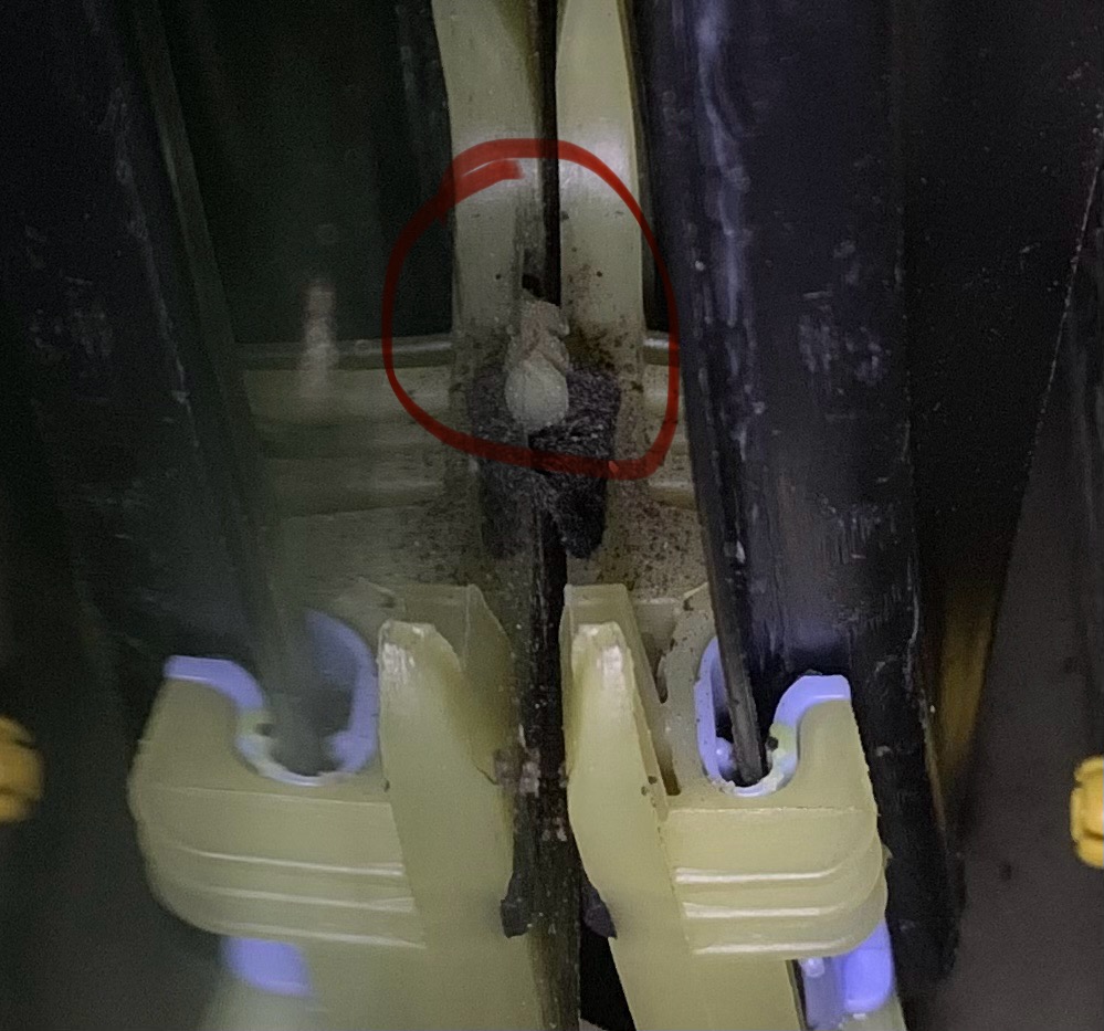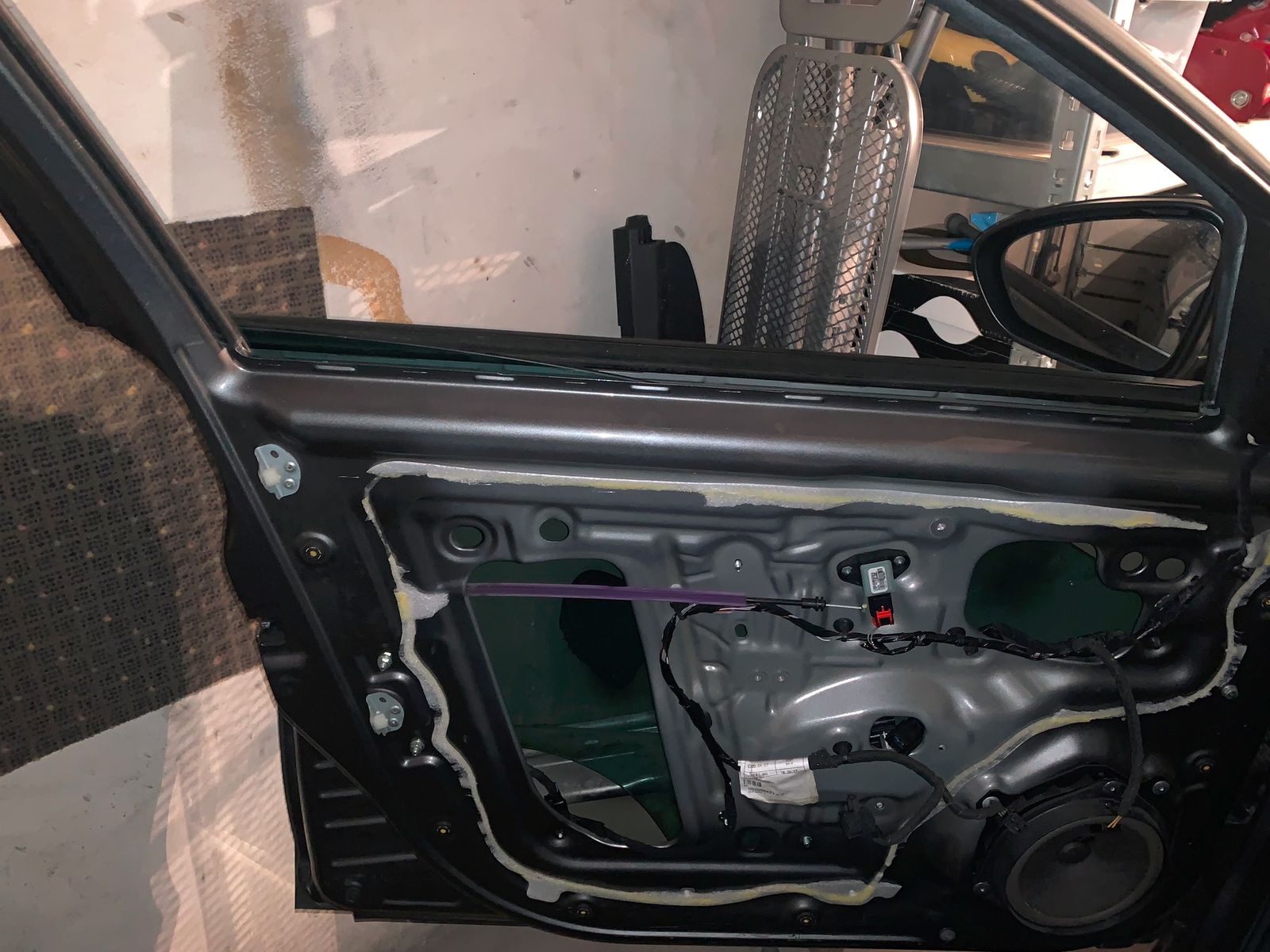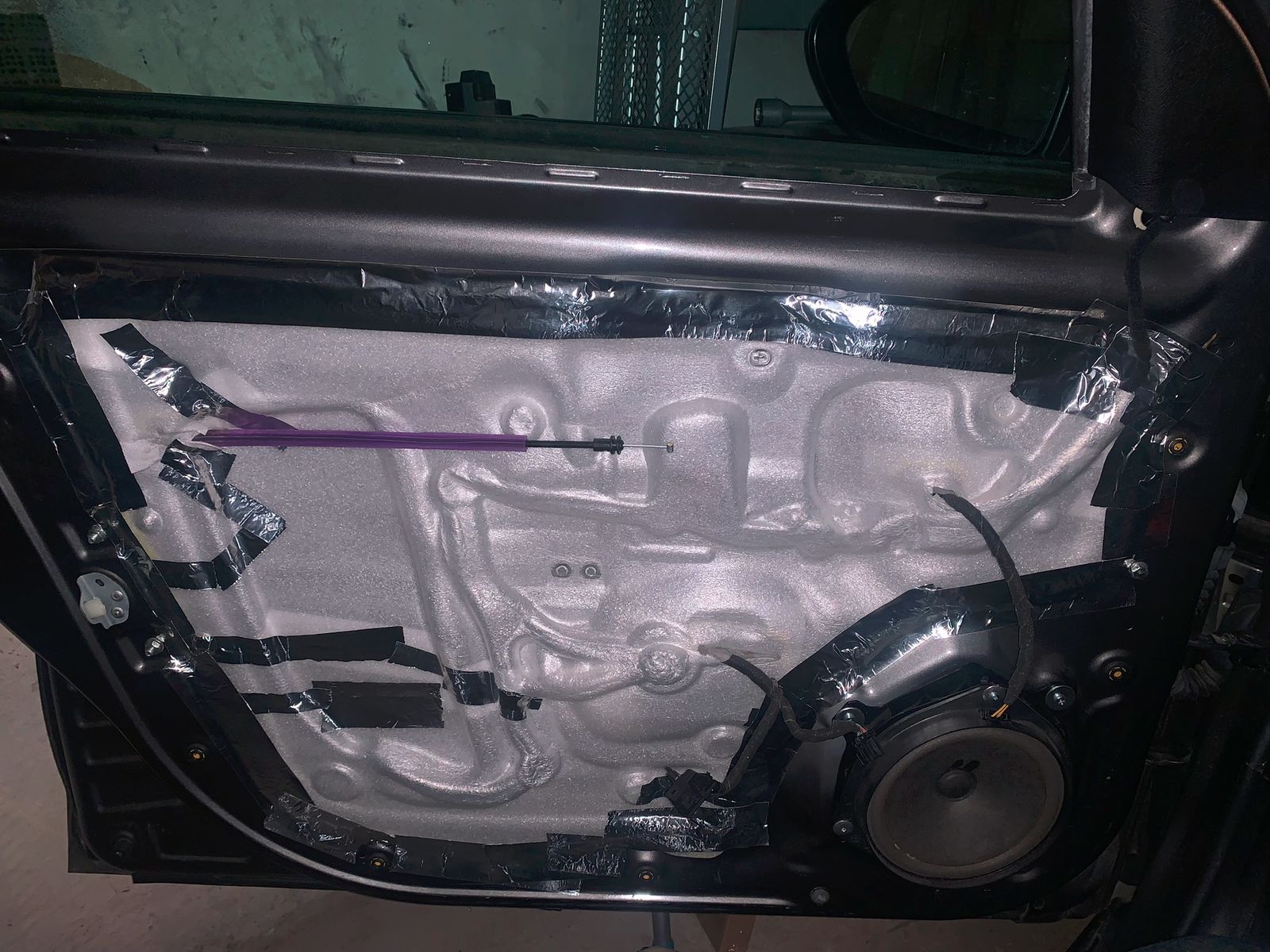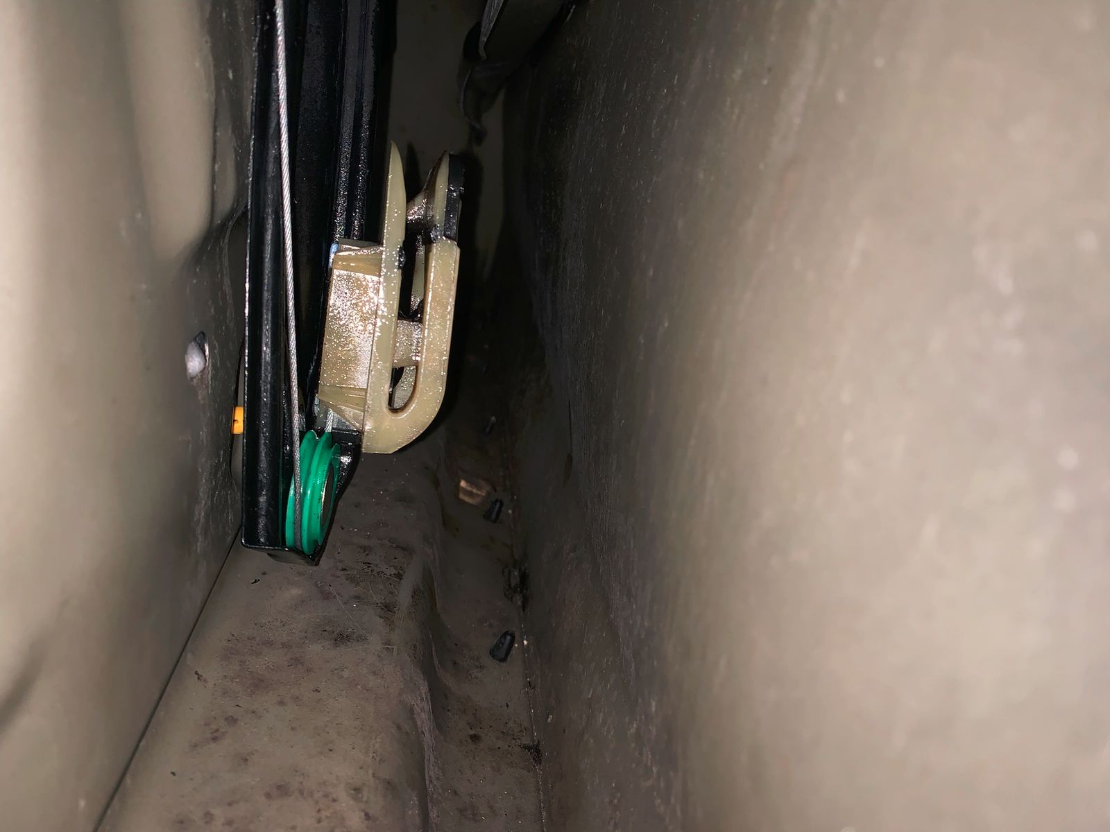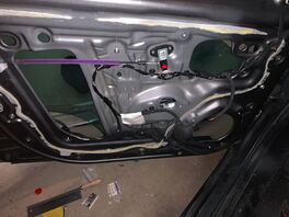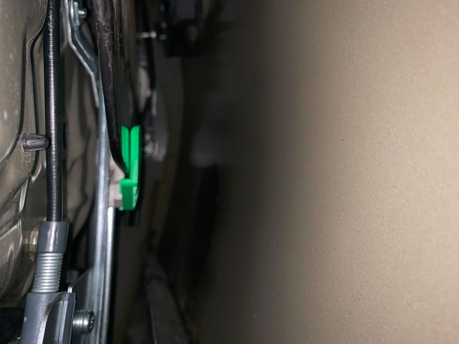 Der Bowdenzug war bei meinem OE-Fensterheber oben von der Rolle runtergesprungen und komplett stramm über die untere Rolle gezogen, sodass es selbst über die Aussparung vom Lautsprecher nicht möglich war mit einem Saitenschneider den zu kappen, weil einfach zu stramm und man nicht dazwischen kam.