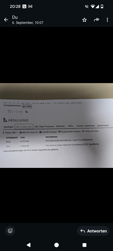 Servolenkungsfehler wird im Dispaly angezeigt, beim Auslesen die Fehler-Codes aus dem Foto im Anhang.