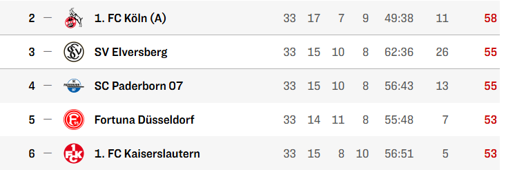 würde Paderborn direkt aufsteigen und Köln müsste in die Relegation!