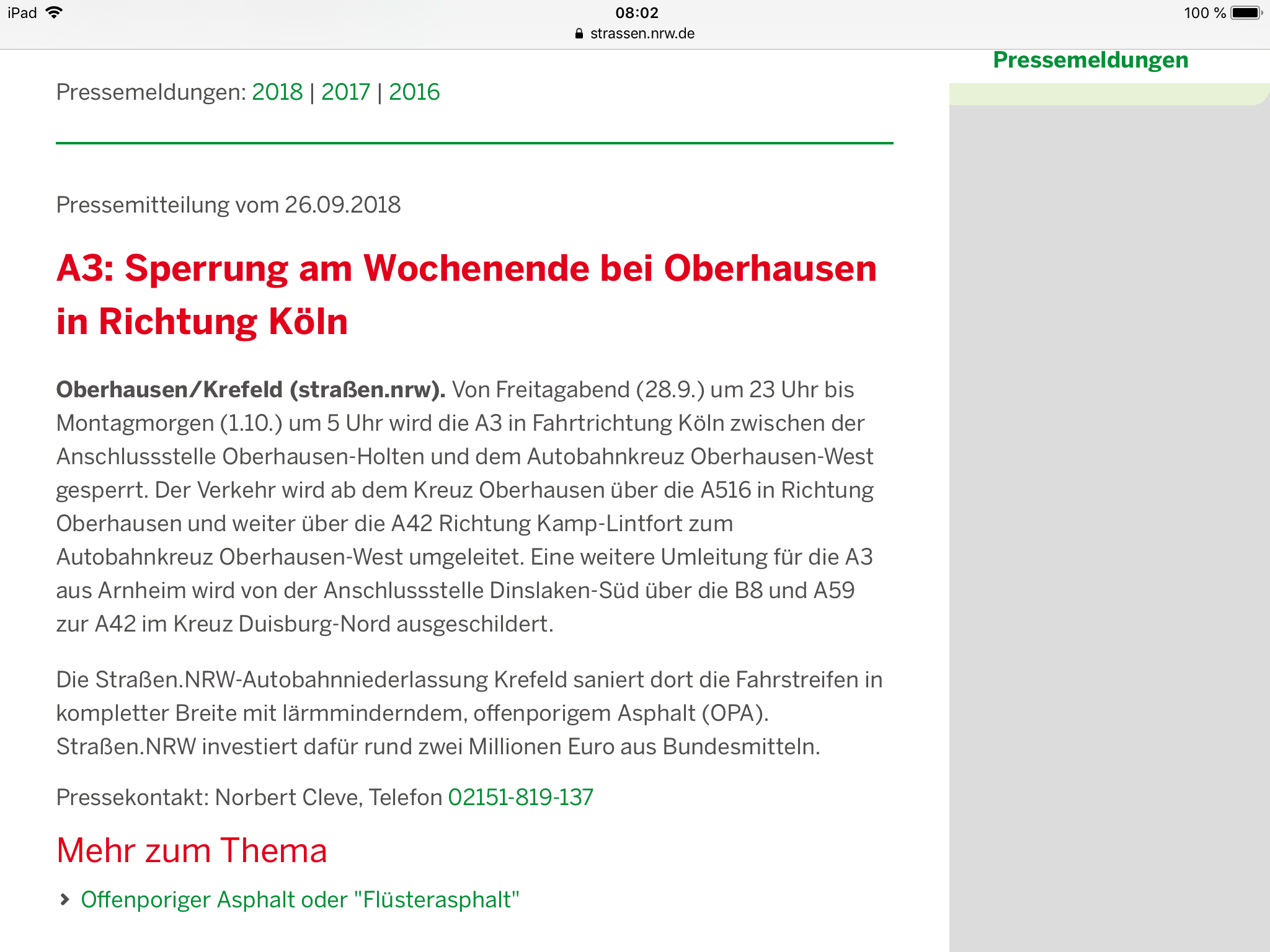 Also wir kommen direkt morgens, aber die A3 ist glaube ich gesperrt?