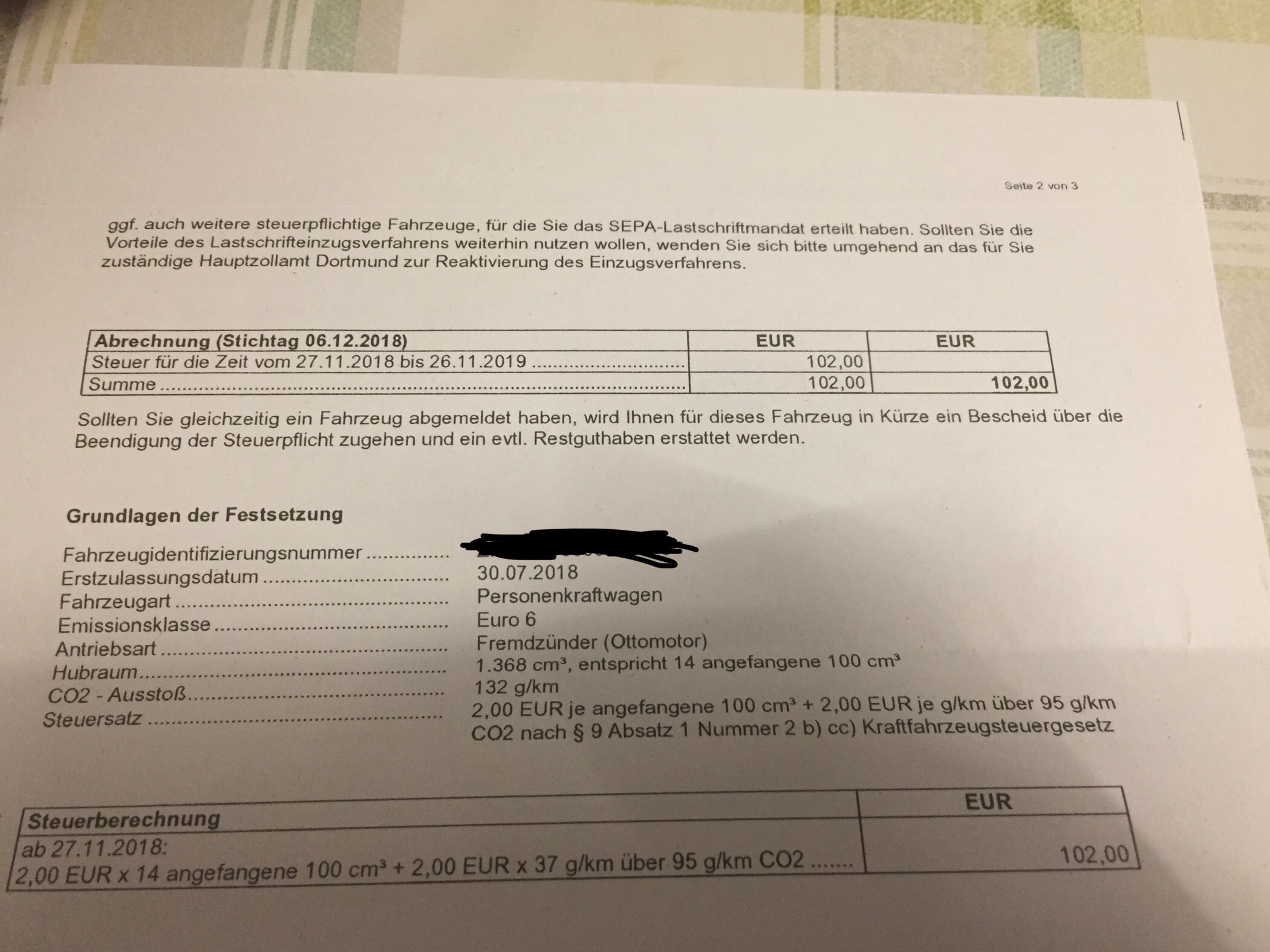 Interessant. Mir haben sie im Juni 2018 104 Euro abgebucht. Baujahr 2016, also das normale Euro 6. Wie kann das denn sein, dass Du 2 Euro weniger zahlst.....