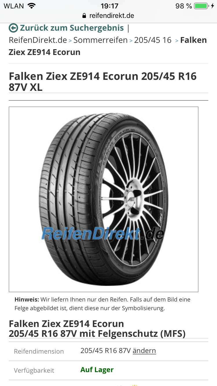 Alles anzeigenFalls du auf 205/45/R16 gehen möchtest ist es gerade noch erlaubt, 7 % Abweichung. 107 Km/h wird angezeigt und in der Realität sind es 100 km/h