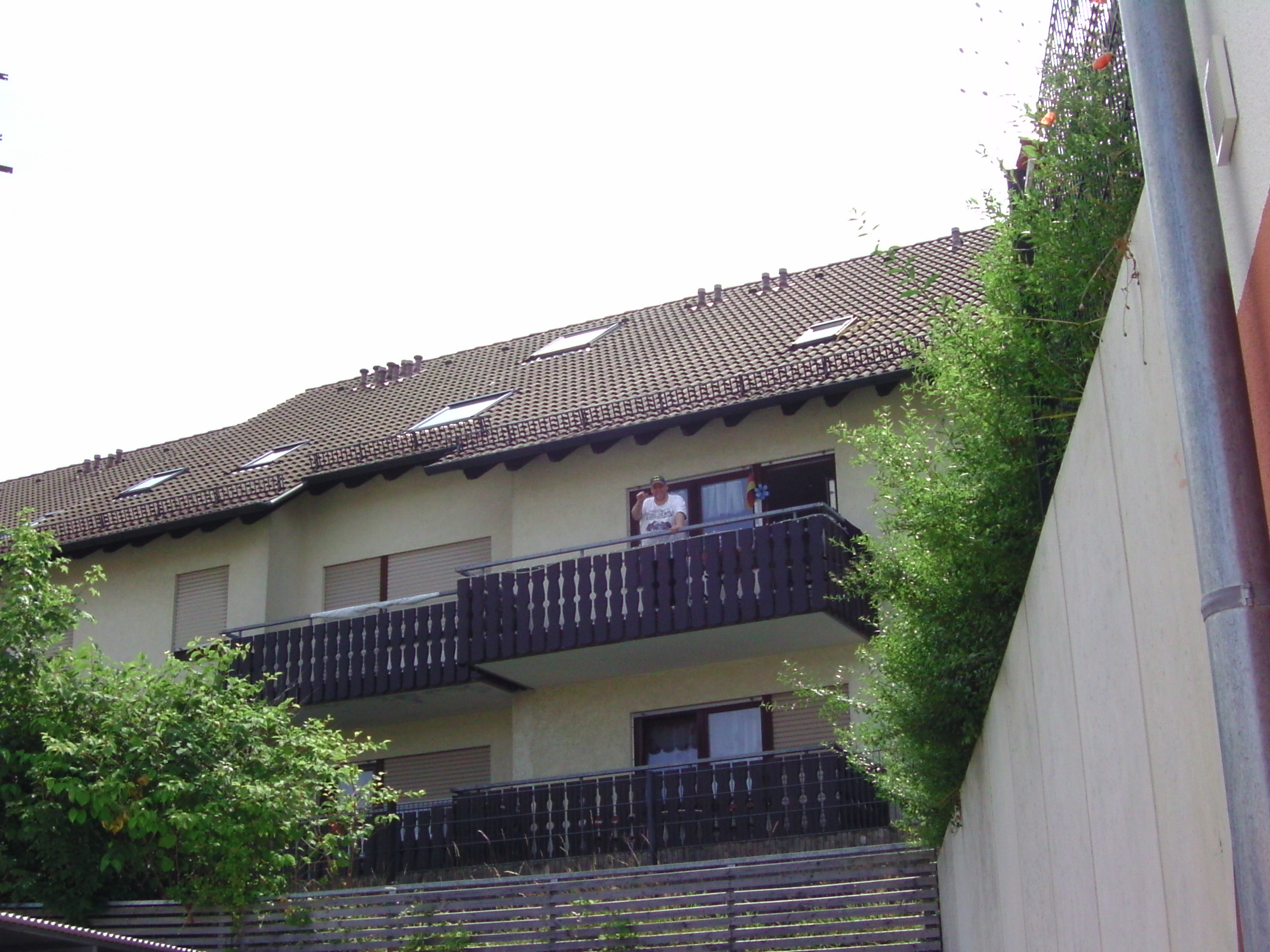 Das ist unser großer Balkon der Ferienwohnung im Schwarzwald (mit mir auf dem Bild)