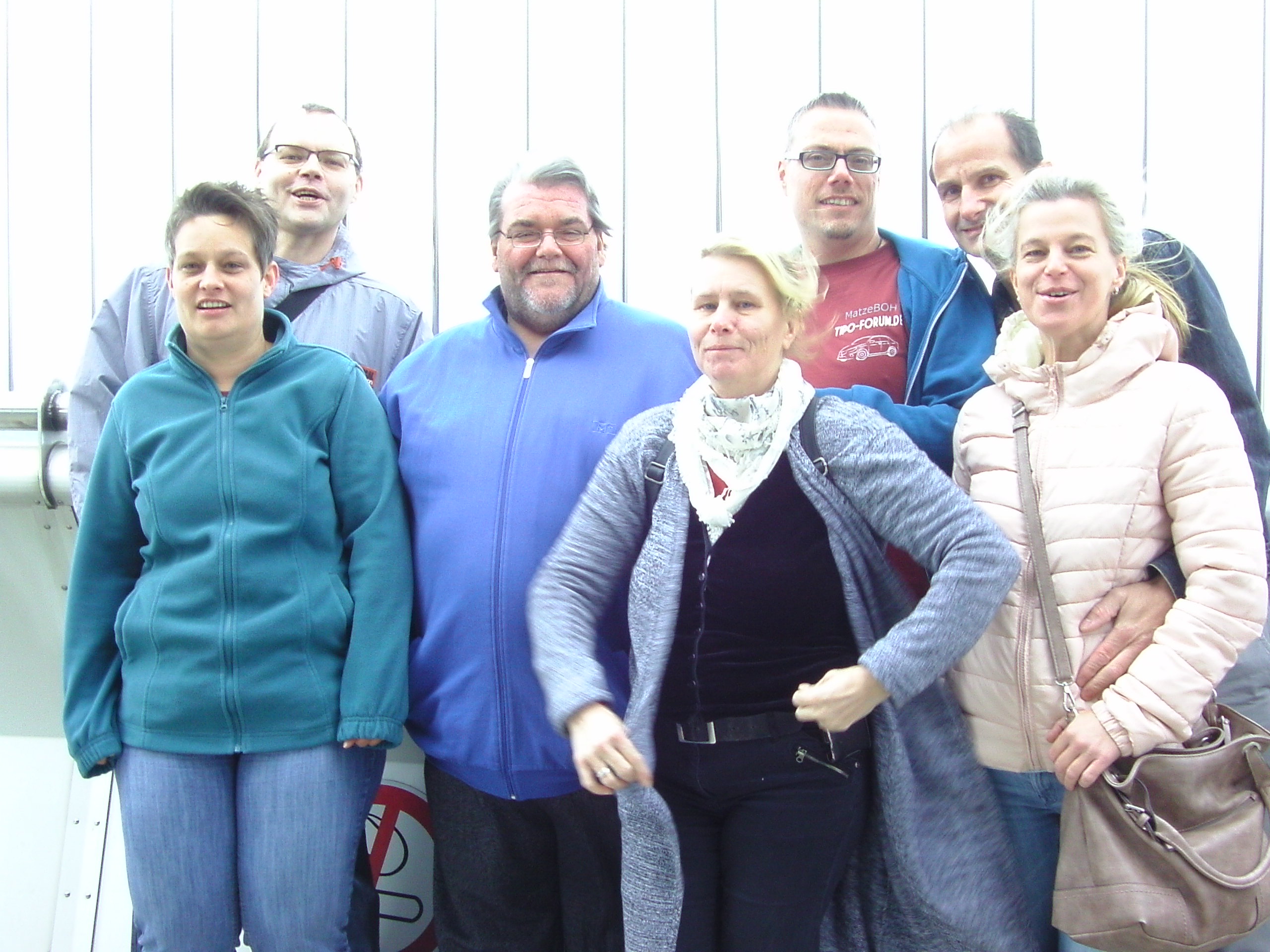 Silke, Chris, Andi, Anne, Matze, Patrick und Moni auf der Besucherplattform in luftiger Höhe...
