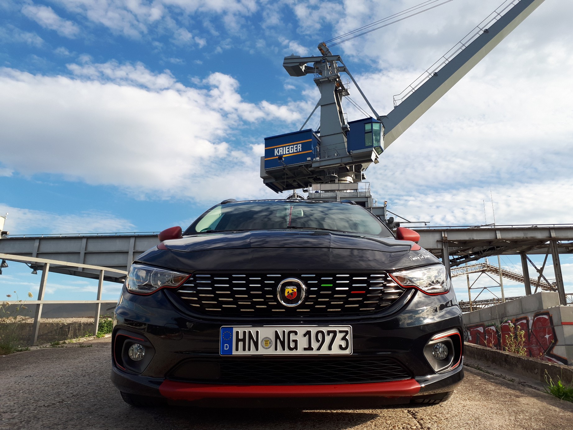 Flugzeuge auf dem Dach oder Flugzeugschwänze hinter dem Auto kennen wir ja schon - aber ein Kran auf dem Tipo...das hat was! Toll!