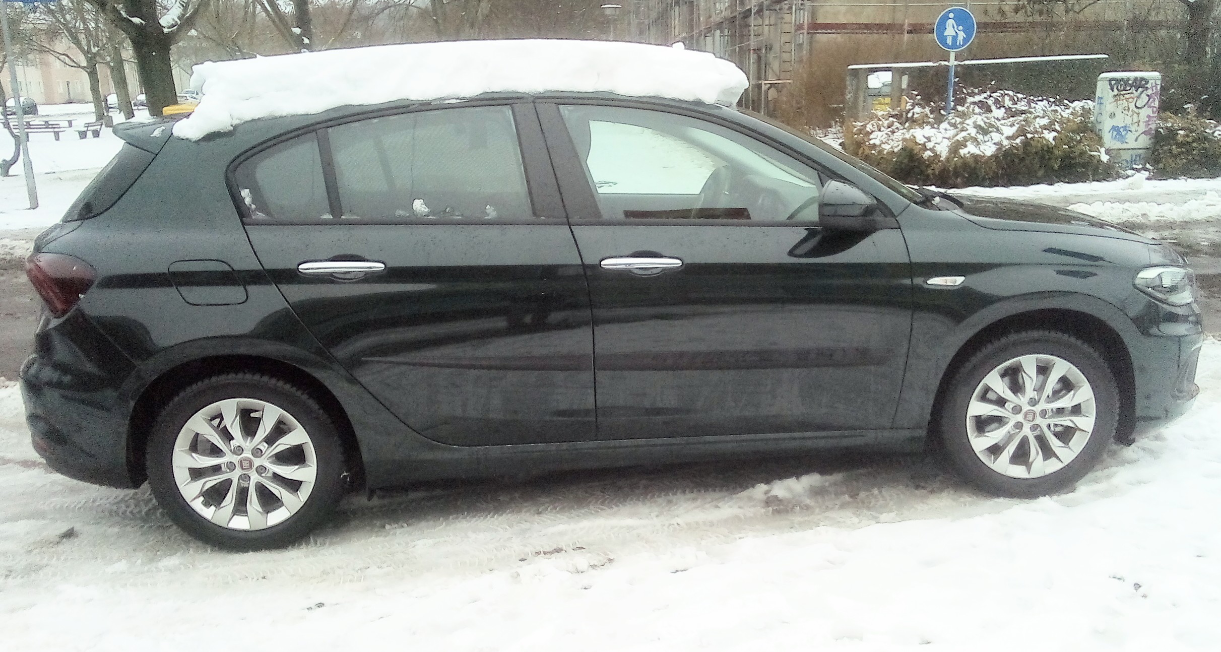 Hmm, die Haube war mit mir auf der Arbeit und beim Einkaufen... Bei den meisten Autos fliegt beim ersten Bremsen oder in der ersten Kurve der Winterbelag vom Dach. Beim Tipo aber nicht. Ich gelobe beim nächsten mal Besserung. Will ja hier nicht als schlechtes Beispiel herhalten.